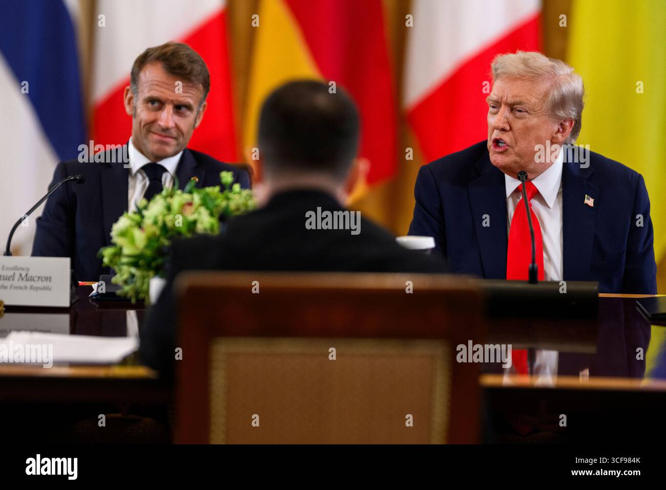 WASHINGTON DC, USA - 18 August 2025 - US President Donald Trump meets with UK Prime Minister Sir Keir Starmer, Ukrainian President Volodymyr Zelenskyy
